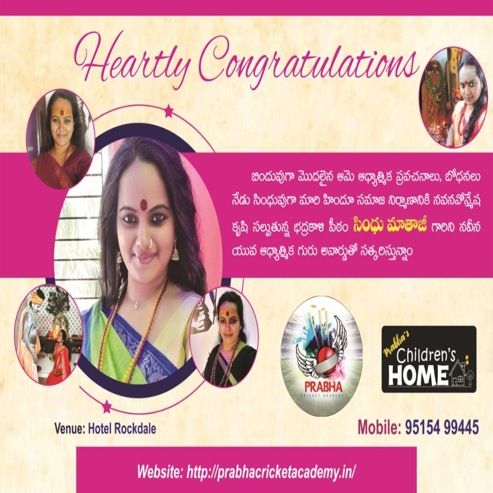In a momentous occasion that resonated with spiritual significance, Dr. Sindhumataji was awarded the esteemed Spiritual Leader Award at the revered Bhadrakali Peetam. This honor is a testament to her unparalleled dedication, visionary leadership, and profound impact on countless lives through her spiritual guidance and charitable work.Dr. Sindhumataji has long been a guiding light for many, embodying the essence of selfless service and spiritual wisdom. Her journey is marked by an unwavering commitment to elevating the human spirit and fostering a deeper connection with the divine. Under her guidance, Bhadrakali Peetam has flourished as a sanctuary of hope, healing, and enlightenment. The award recognizes not only Dr. Sindhumataji’s exceptional spiritual leadership but also her pioneering efforts in community upliftment. Her initiatives have reached far beyond the confines of traditional spiritual practices, encompassing diverse areas such as education, healthcare, and social welfare. Through her visionary approach, she has empowered individuals from all walks of life, fostering a sense of unity and purpose. The award ceremony, held on [Date], was a grand celebration of Dr. Sindhumataji’s remarkable contributions. Attended by distinguished guests, community leaders, and devoted followers, the event was a heartfelt tribute to her enduring legacy. Speeches highlighted her transformative work and the profound effect she has had on the lives she has touched. Dr. Sindhumataji’s influence extends through her tireless efforts in providing support and guidance to those in need. Her initiatives have created a ripple effect of positive change, inspiring others to follow her example of compassion and service. This recognition is not just an acknowledgment of her past achievements but also an affirmation of her ongoing commitment to spiritual and humanitarian excellence. As Dr. Sindhumataji continues to lead with grace and integrity, this award stands as a beacon of her extraordinary journey. It celebrates her as a paragon of spiritual leadership and a testament to the boundless potential of a life dedicated to the greater good.